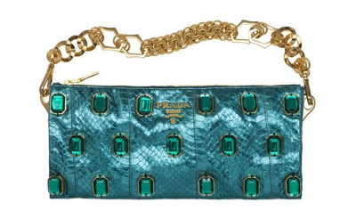 Prada también es una firma que se encarga de tenernos al tanto de la moda en bolsos, carteras y clutches. En esta temporada ha lanzado una línea de primavera: la línea Pietre. En ella encontramos bolsos amplios y clutches ideales para una salida nocturna. La línea Pietre se caracteriza por llevar en el exterior muchas aplicaciones de acrílicos faceteados, agregados a mano a cada uno de los modelos. Estos acrílicos simulan gemas, que le dan a cada pieza un look muy original.