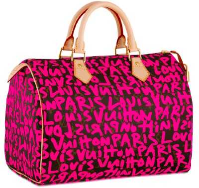 Mientras la esposa del Rockero Pete Wentz, Ashley, prefiere el color naranja, la modelo Kim kardashian prefiere su Louis Vuitton Graffiti Keepall 50 de la colección de Stephen Sprouse de color fucsia.