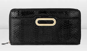 Pensando en ello, la firma Jimmy Choo nos trae algunas novedades en accesorios para llevar en la cartera, siempre con la calidad y elegancia que caracteriza a la firma. Una muestra de ello es la billetera Teri, elaborada en cuero de piel de serpiente. Su tamaño y capacidad la hacen muy práctica; asimismo, su asa larga y delgada, permite llevarlo como cartera, en tanto que si se guarda esta parte, puede lucir muy elegante como un clutch.