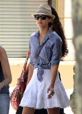 Los sombreros de paja los usa en el verano ya sea con vestidos o faldas. Para sentirse mucho más fresca, se hace una cola de caballo con su pelo