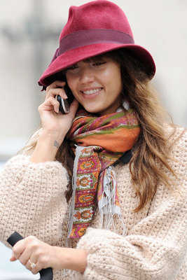 Las boinas y sombreros tejidos, Jessica Alba los usa en el invierno. Cuando hace bastante frío, inserta todo su pelo en el sombrero y cuando el clima está más fresco, lo deja suelto.
