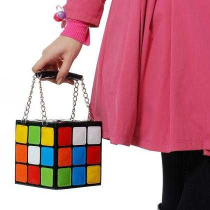 Quien creería que el famoso cubo de Rubik que aún sigue vigente en nuestros corazones lo sera más ahora que estará en nuestras manos, pero no para jugar sino para combinar nuestro atuendo. Podemos comprobar al ver éste diseño creado por la marca Let`s Fly que es un bolso que llama mucho la atención.