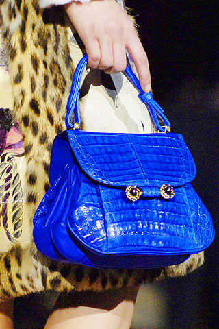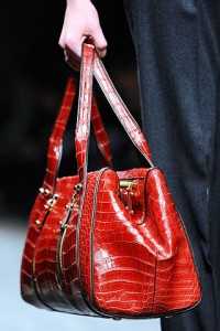 En esta temporada los bolsos de cocodrilo de piel falsa estan triunfando en las pasarelas más famosas del mundo. Son el accesorio básico cuando se trata de lucir elegante y ser la envidia de todas tus amistades. Hoy en día los bolsos pueden tener pieles reales o falsos ya los los diseñadores de marcas famosas apuestan a ellos. Por ejemplo, Roberto Cavalli nos presentó un bolso de cocodrilo color azul eléctrico con cierre-joya dorado e incrustaciones de pedrería. Asimismo, estan los otros modelos de color gris de Versace que opta por diseños de color oscuros con piedra con doble asa y hebillas de bronce y, por supuesto, el bolso de color rojo siempre marcando tendencia para esta temporada.