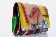 Pues bien, existen unos clutchs que son una verdadera monada y que vienen dispuestos a fascinar a cualquier mujer por más simplista que sea. La diseñadora Rebecca Robinson ha creado la marca Psnob. En ella hace unos diseños realmente increíbles y únicos en su especie. Ella pinta con acrílico unas telas que luego vienen a formar parte del total de la estructura del clutch.
