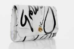 Lo que afirma Rebecca es que su afán es crear, partiendo de una pieza fina de arte, un bolso que sea muy funcional y sí que lo es. Los colores fuertes y los trazos abstractos priman en esta lindísima colección llamada Gwenny. Tiene tres líneas: La línea «Única en su especie» de $1500 cada clutch: