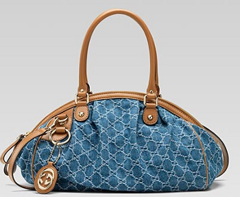 Top 4. En el puesto 4, está este hermoso bolso tejido en jean con piel marrón, tiene un acabado dorado claro y con asas dobles con caída de 18 cm y asa para hombro desmontable de 35 cm y bolsillos interiores. Elegante y casual a la vez.  Gucci la presenta en tres versiones: azul, negra y marrón.