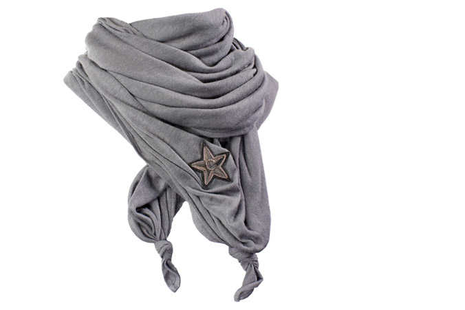 Este fular tiene un accesorio que es el parche de estrella. La marca de este fashion fular es Céline. La línea que sigue es la Echarpe modelo Knot Stole. Y como todos los fulares tienen medidas, este es ideal para cubrirte parte del pecho con sus 140×140 centímetros. Está hecho de lana y su precio es 220 euros.
