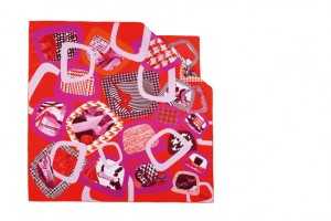 Este fular de Dior es de su línea Otoño-Invierno, Sixty, marcando la época de los sesenta. Está hecho de seda rosa y roja. Su precio es 230 euros.