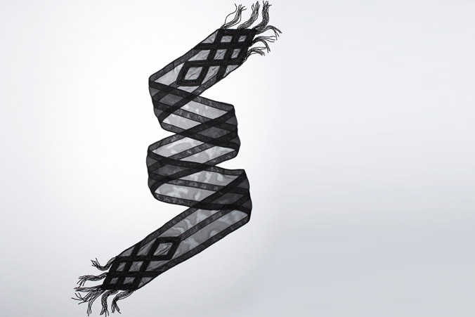 De la marca Diane Von Furstenberg, este fular hecho con muselina de seda tiene, además, un bordado de perlas azabache. El precio es 120 euros.