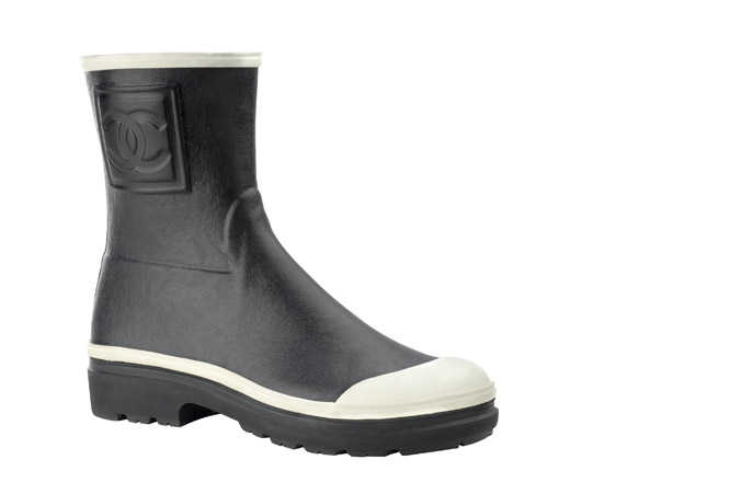 También hay botines. Un diseño bastante simple es el de Chanel: Botín de goma en azul marino y blanco. El precio es 450 euros.
