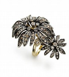 Esta sortija es característica de las joyas que había en la época victoriana. Las flores que representan son margaritas y fue hecha por la marca H.Stern con plata envejecida y diamantes en cada pétalo de la flor.