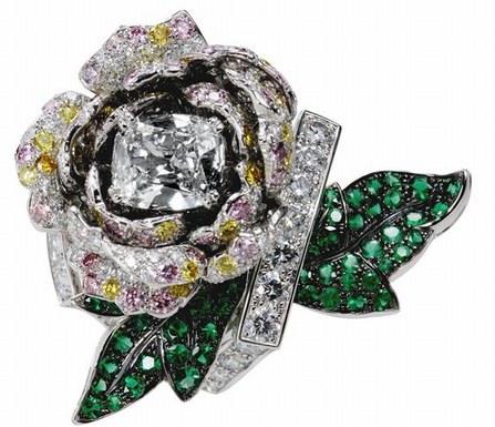 La imagen de abajo es de Boucheron, según detalla Enfemenino.com es una sortija especial puesto que está hecha con diamantes y esmeraldas y fue realizada para rendir homenaje a la peonía.