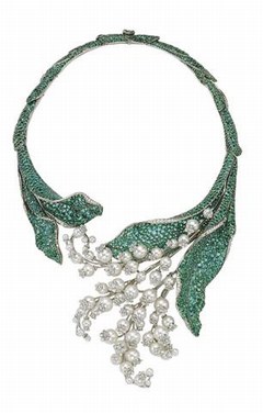 De igual forma, puedes combinar alguno de estos accesorios con collares vistosos y hechos en forma de flor. Victoire de Castellane, diseñadora de joyas de Dior, utiliza su ingenio para crear esta gargantilla que tiene diamantes en las campanillas plateadas, ideal para un vestido escotado.