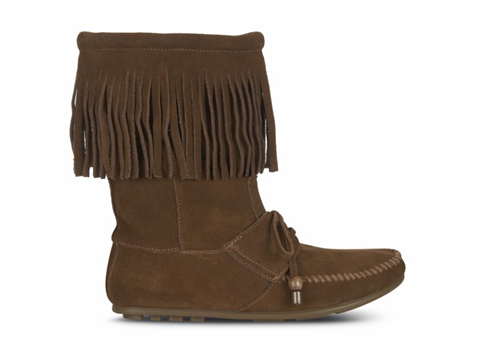 Variando completamente de estilo y apostando por una onda entre lúdica y «country», este modelo de botín crea la impresión de haber unido mocasines con flecos para una salida al campo o una fiesta temática de «cowboys». Vayan alistando los jeans, blusa a cuadros y el chaleco de gamuza: