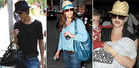 Otra celebridad que se une a esta tendencia es Katie Holmes, que luce un sombrero negro. La actriz de Desperate Housewives, Eva longoria, y la super mamá rockera Gwen Stepahny no se quedan atrás, teniendo la última un look de «rock star».