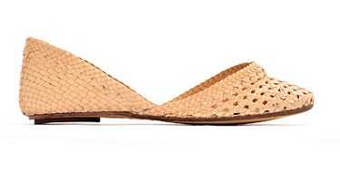 La comodidad de unas bailarinas, en un modelo de estilo artesanal, muy de verano. En piel trenzada y en rosa pastel, perfecta para llevar con shorts de jean en un look muy hippy.