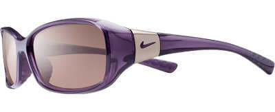 Si te gustan los diseño aerodinámico, puedes optar por el diseño Siren, un modelo traslúcido con forma ovalada en tono lila; este lleva el símbolo de Nike sobre una banda blanca colocada en ambos brazos de la montura. Las lunas son de color entre marrón y rosado con filtro y protección contra los rayos ultra violeta. El tamaño de las lunas es pequeña con forma rectangular.