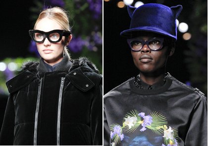 Givenchy en su colección otoño – invierno 2011, incorporó gafas estilo ojos de gato. Las más ligeras complementaban el sombrerito con orejitas de gato. Las más anchas, con una textura casi como de terciopelo ,me parecen fascinantes, pero no las llevaría. También una prenda bastante extraña son estas gafas con un felino en las patitas en un amarillo intenso.