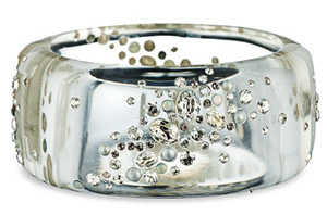 Respecto a los modelos para las firmas costosas, este verano se están destacando los brazaletes en piedra como el diseño de Marc Jacobs, como en acrílico transparente como este diseño de Alex Bittar, que lleva cristales incrustados.