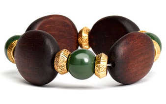 Otra alternativa en accesorios para el verano es este brazalete que combina madera con oro y piedra verde en un elegante diseño de la colección Ralph by Ralph Lauren.