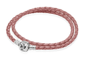 - Si tu pareja quiere iniciarse en el «mundo Pandora», puedes optar por la pulsera tradicional de plata (o en oro), o elegir una alternativa más original como este modelo con correa doble en cuero rosa y cierre en plata, sencillamente adorable!.